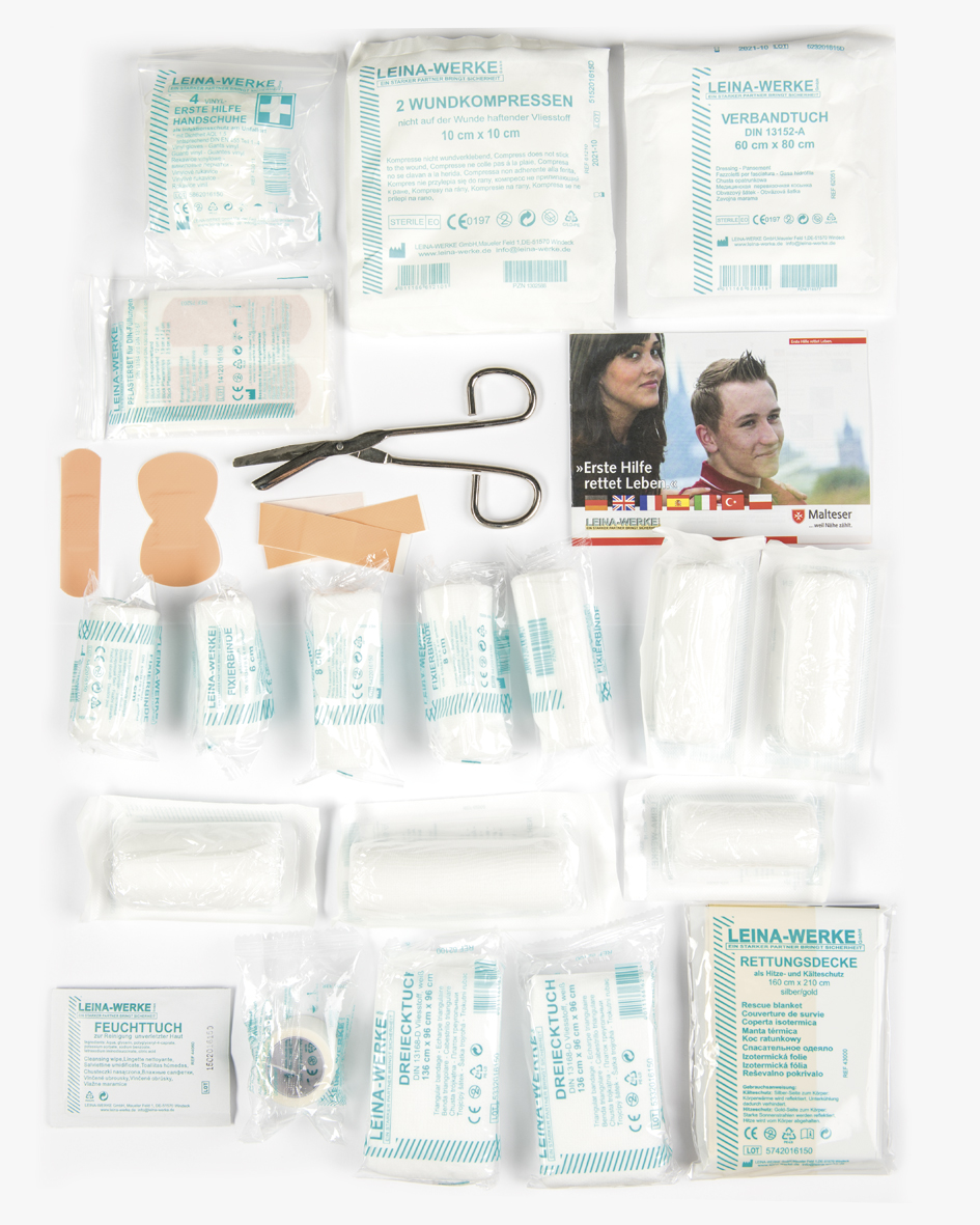 First aid instructions (in English and German)