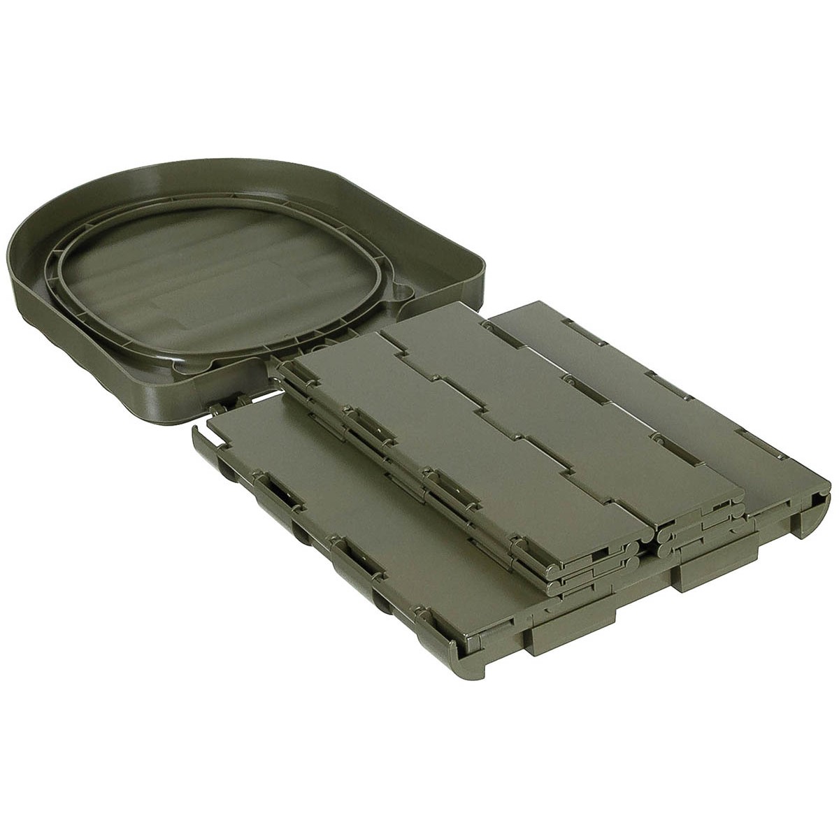 Robust folding camping toilet that can also be used as a waste bin, storage box or extra seat. Easy to set up in seconds thanks to the folding mechanism