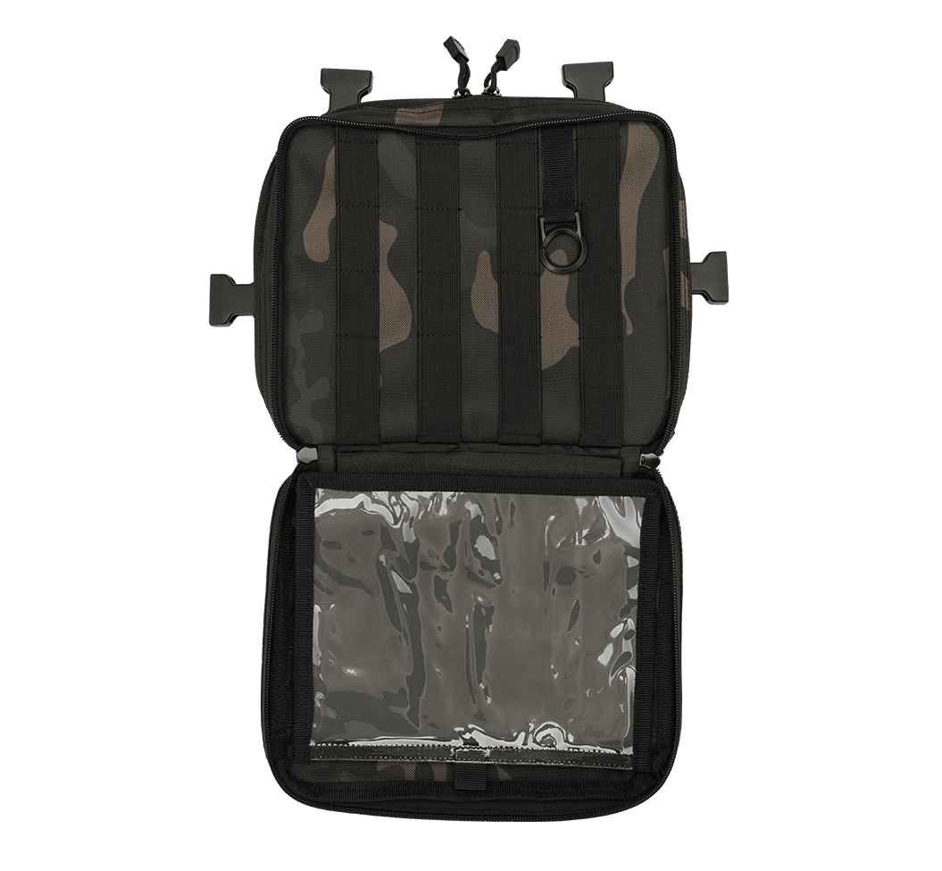 Molle-kiinnikkeet laukun ulkopuolella ja myös sisäpuolella.