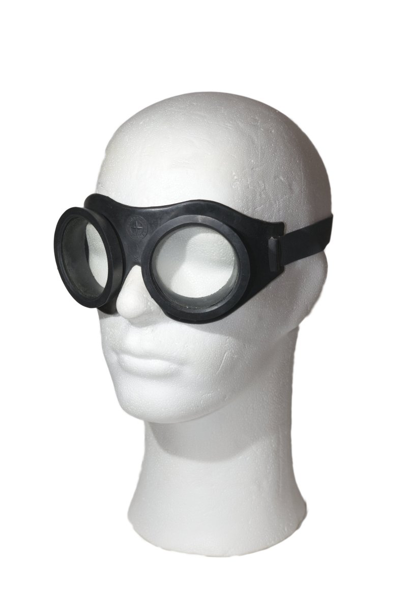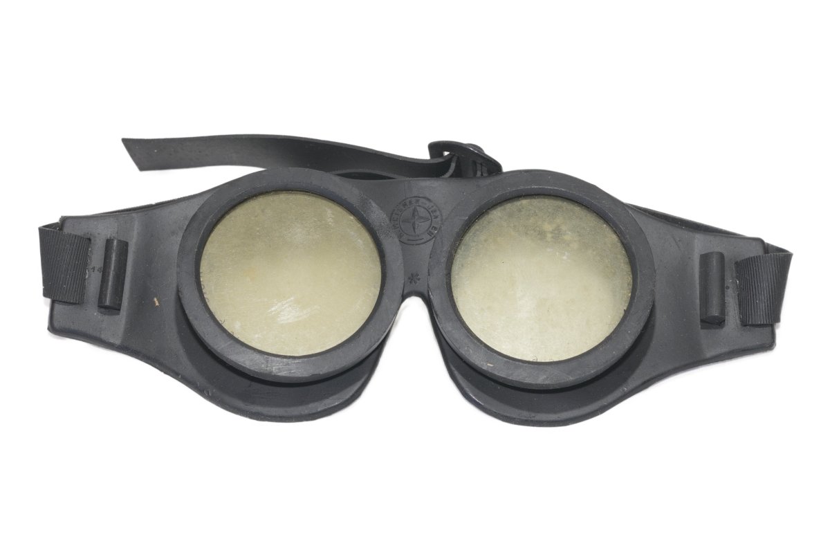 Hyvässä kunnossa olevat toisen maailmansodan aikaiset moottoripyöräilylasit/kumilasit.